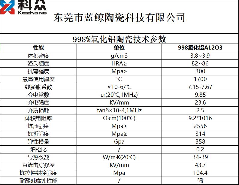 99.8%氧化鋁陶瓷技術(shù)參數(shù)